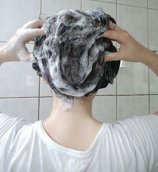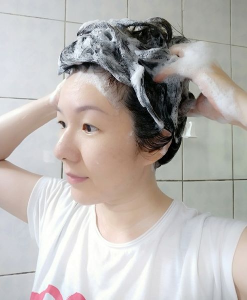 不要壓著頭髮,只洗到頭髮,而沒碰到頭皮。