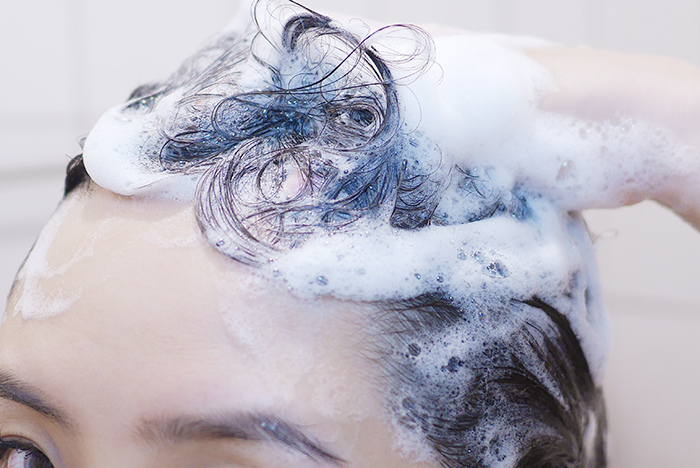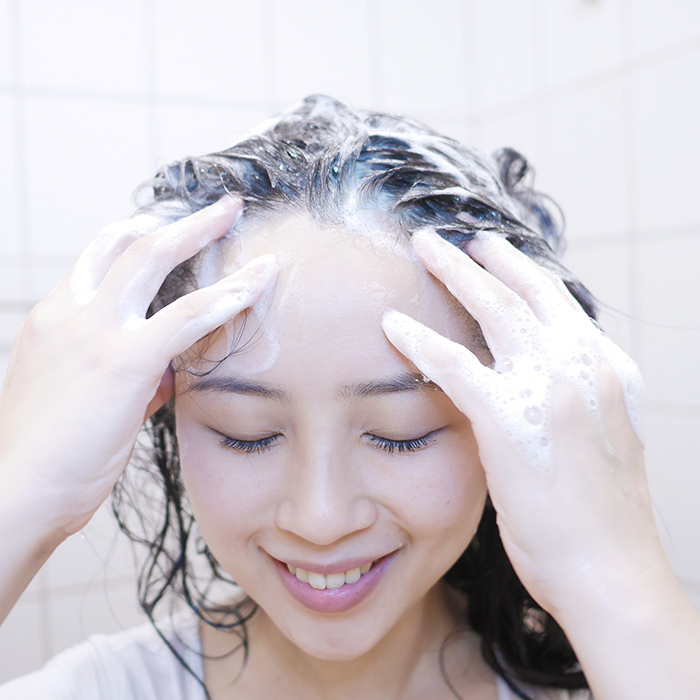 1.取適量洗髮精於濕髮上,以指腹按摩頭髮與頭皮至充足起泡,用水清洗。