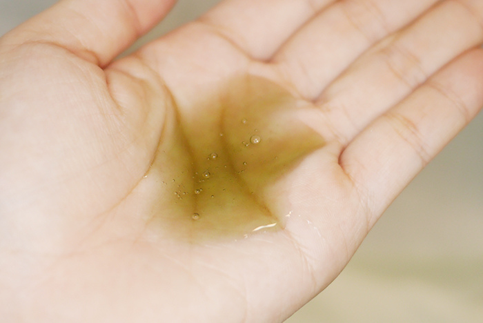 擠出來精油香氣非常好聞!半透明的深綠色洗髮精,富含了滿滿的精華啊!
