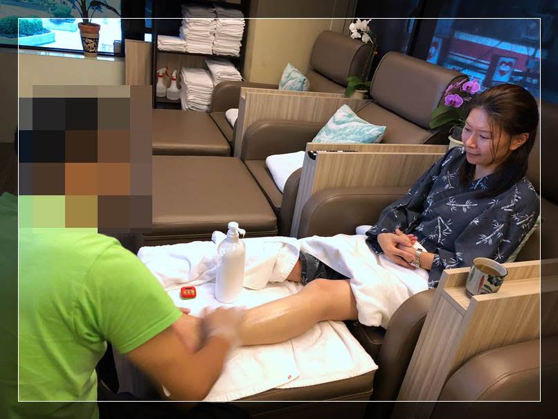 ▲師傅邊不時用乳液塗抹在腿上,比起坊間有些是直接就開始按壓,觸感相較之下舒適許多。