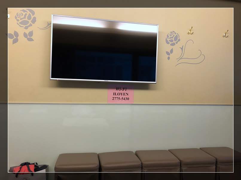 ▲正對的牆面上還有超大電視可以看,師傅不時進來關心一下,還親切幫忙轉娛樂節目給小麻雀看耶。