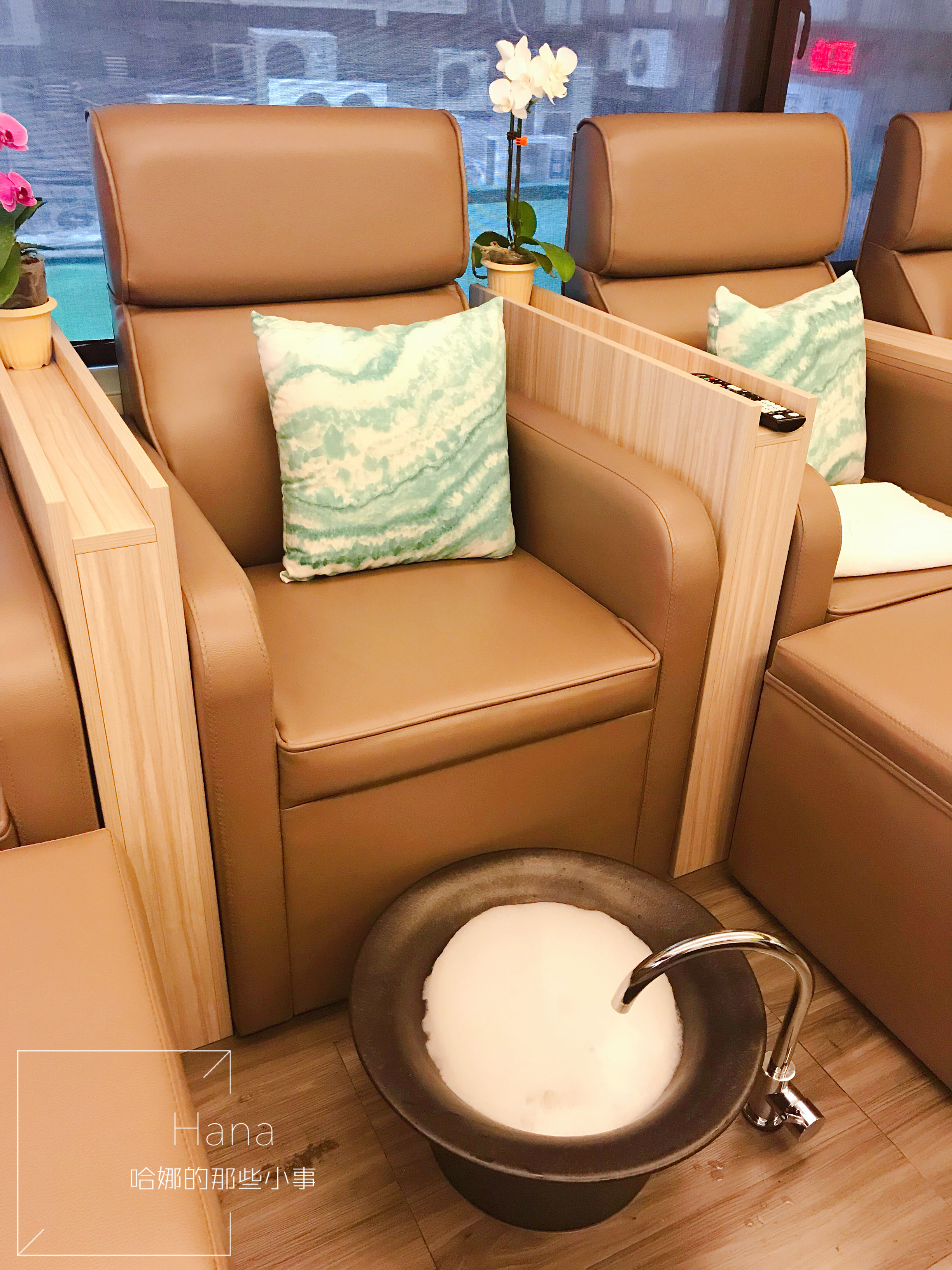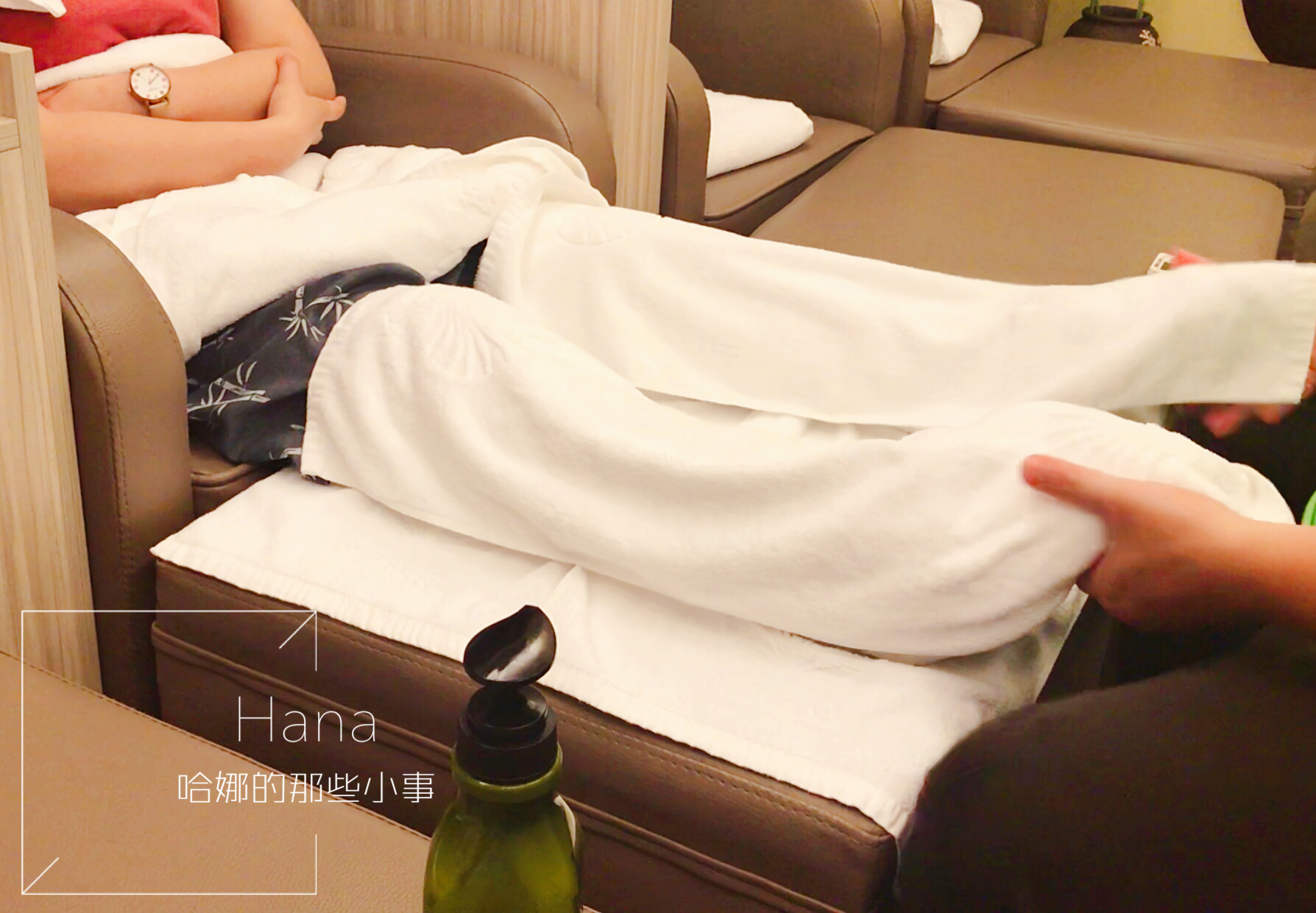 泡腳泡得差不多後,師傅會將我們的腳包起來並推上椅子,