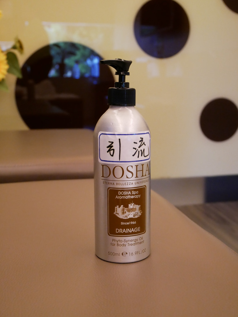 因為腳很容易水腫 , 義大利DOSHA精油有好幾種可以選 , 師父幫我選了"引流" , 專為因水份滯留造成的沉重感及腫脹不適現象而設計的複方協同精油 , 是剛好針對水腫的