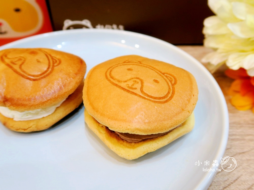 將包裝拆掉後,裡面赫然是長的像銅鑼燒的小點心,金黃色的餅皮上也有小熊的烙印,非常的討人喜歡,小朋友看到應該會愛不釋手吧!