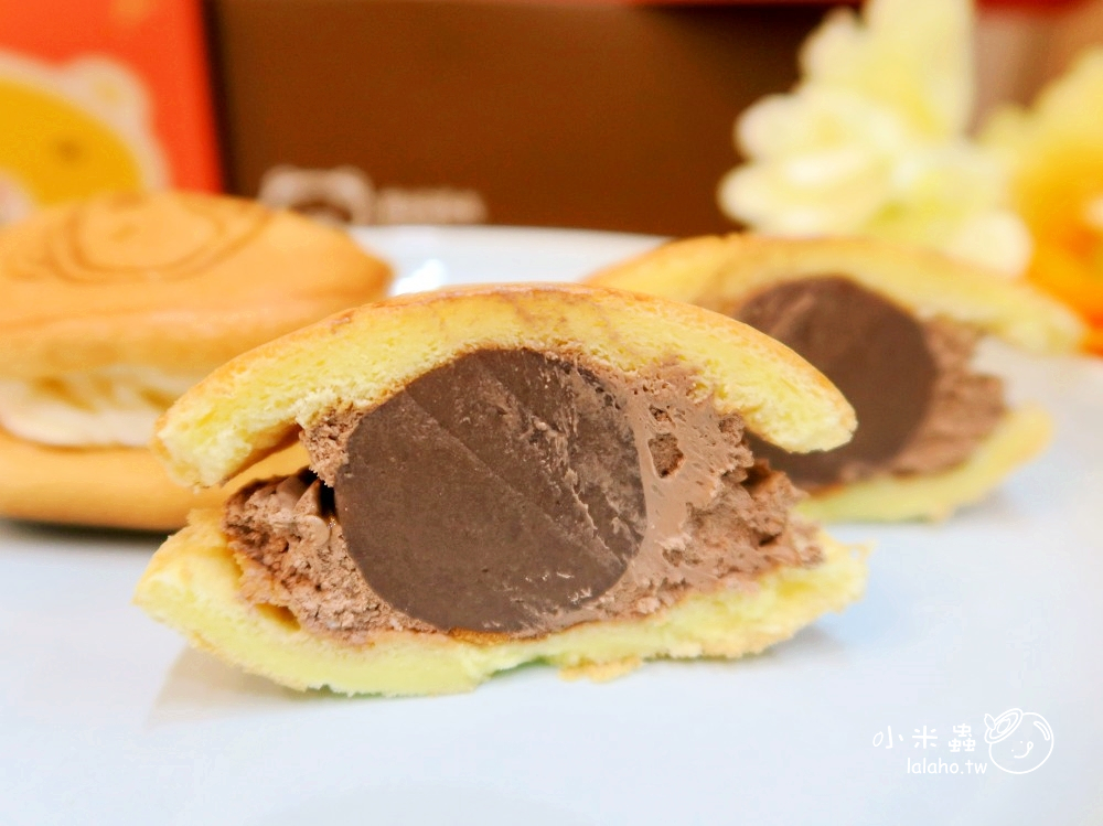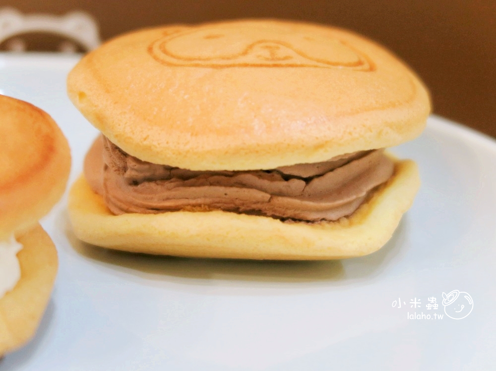 巧克力口味的內餡使用的是鈕扣巧克力原料,味道非常的濃且香,巧克力的味道完全蓋過中間黑糖麻糬的滋味,但一點也不會甜膩,推薦冷凍吃,真的超像銅鑼燒冰淇淋啦!