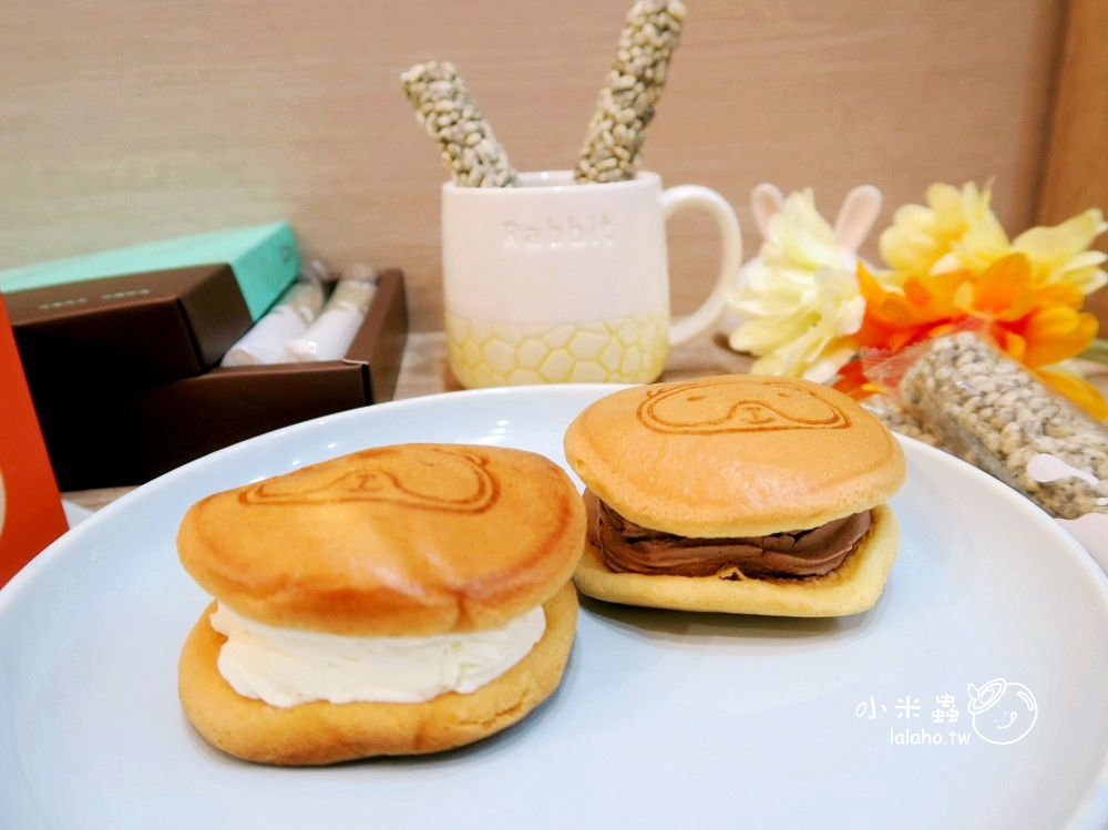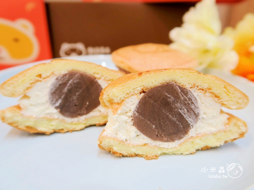 雖說長的很像銅鑼燒,但包的可不是紅豆餡,裡面擠入綿密滑順的生乳餡,中間還藏有一塊麻糬,三種口感叫人嘖嘖稱奇。