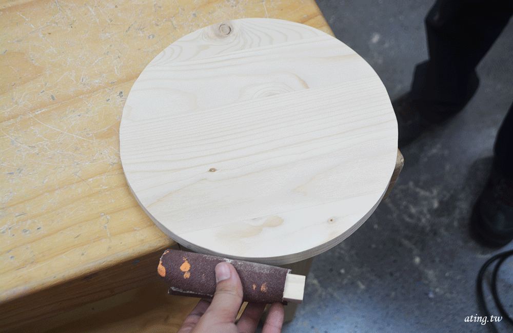 圓凳腳邊也要拿砂紙磨平邊緣。