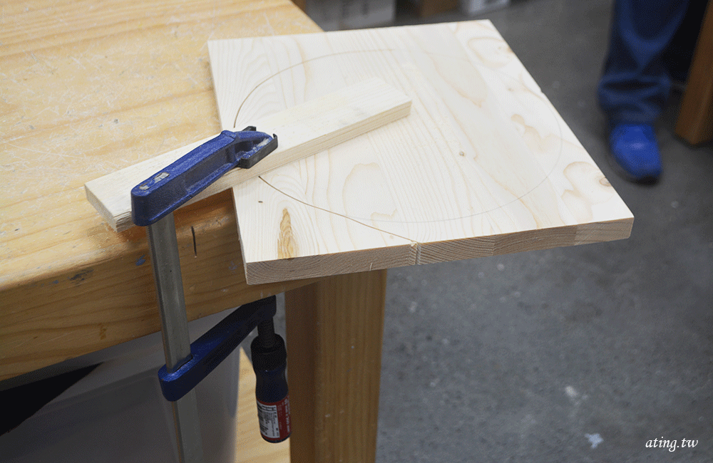 延著鉛筆畫出的圓,鋸出圓形的形狀。