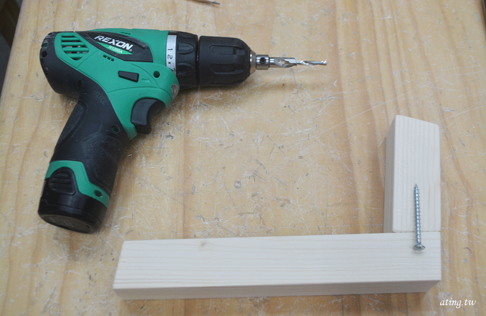 螺絲使用2寸,把螺絲鑽進孔內。白膠(木質專用接著劑)+螺絲鑽孔,讓小圓凳更牢固