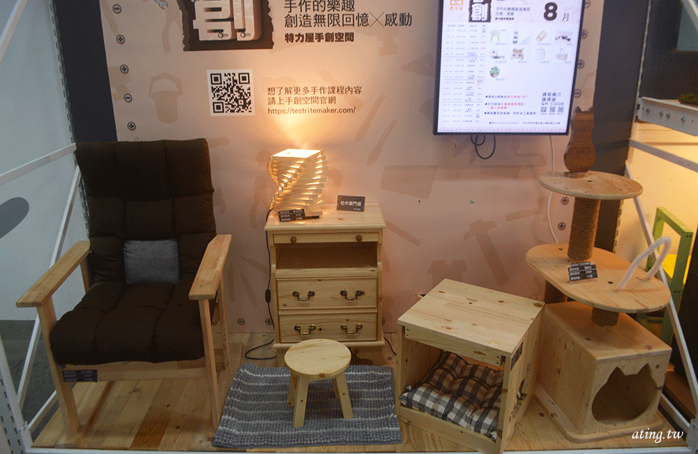現場木工DIY作品選擇很多,特力屋手創空間也經常推出新課程,有興趣的人再上官網觀看最新課程。