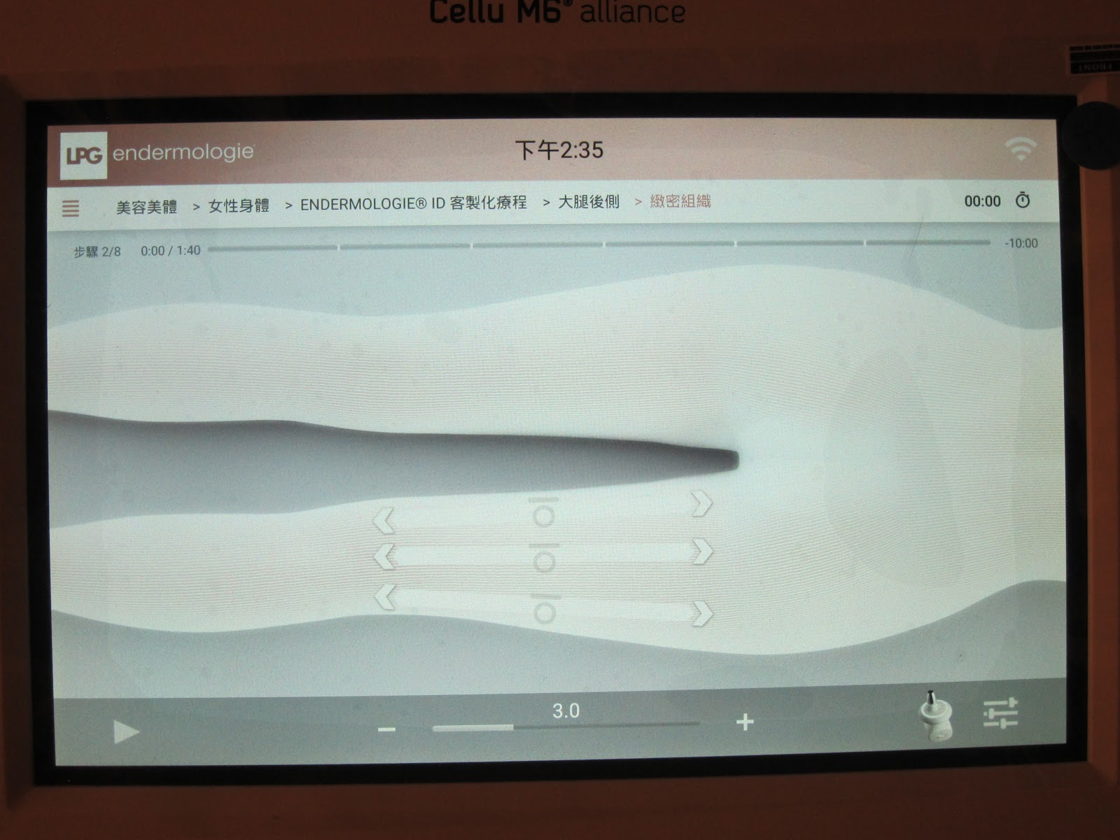 每個部位又可以細分成前後,像我比較在意的大腿後側橘皮,就可以針對這裡施作。有在減肥的都知道,瘦身部位先後是靠基因決定,因此一般很難控制想瘦哪就瘦哪,所以LPG課程可以選擇部位這點我覺得超級棒的!