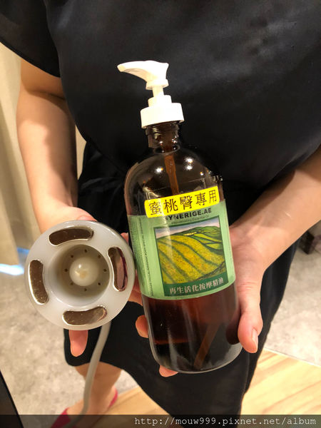 美容師先上蜜桃臀精油,然後用探頭將臀部做集中。
