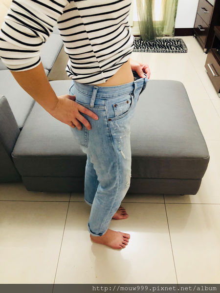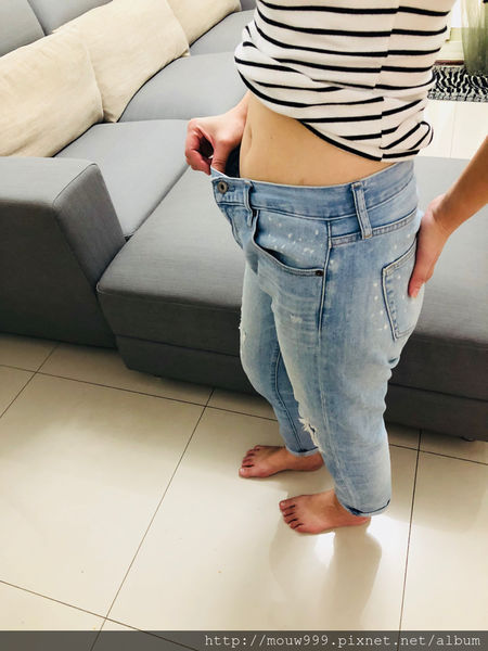 穿上以往穿的牛仔褲,褲頭都鬆了一截呢!