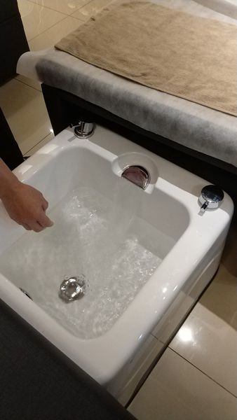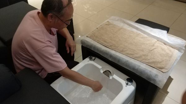 一開始先泡腳,會推開椅子,下面就是泡腳池,
