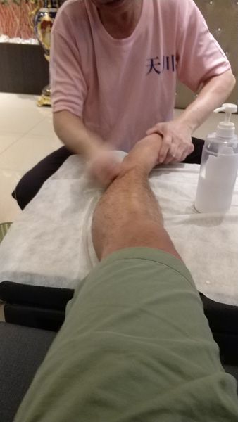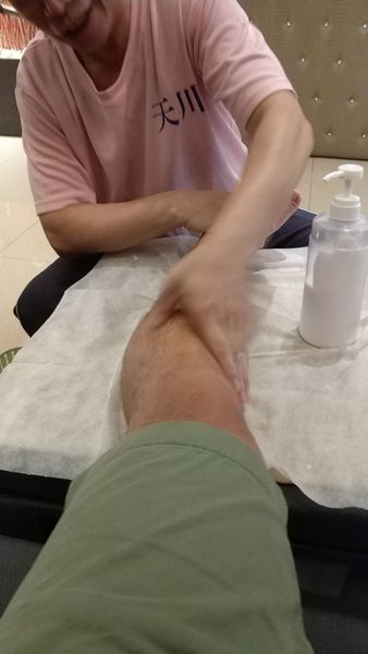 先腳部按摩(大腿,之後換背部,才換頸部) 最後是轉身正面,
