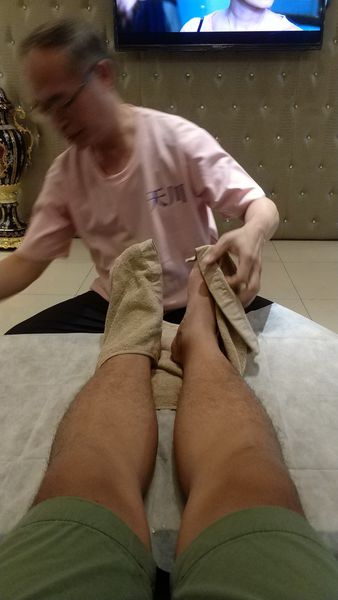 最後會用熱毛巾熱,敷敷剛按摩好的腳很舒服,提高血液循環 (旁邊有熱毛巾櫃子)