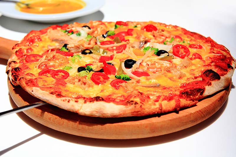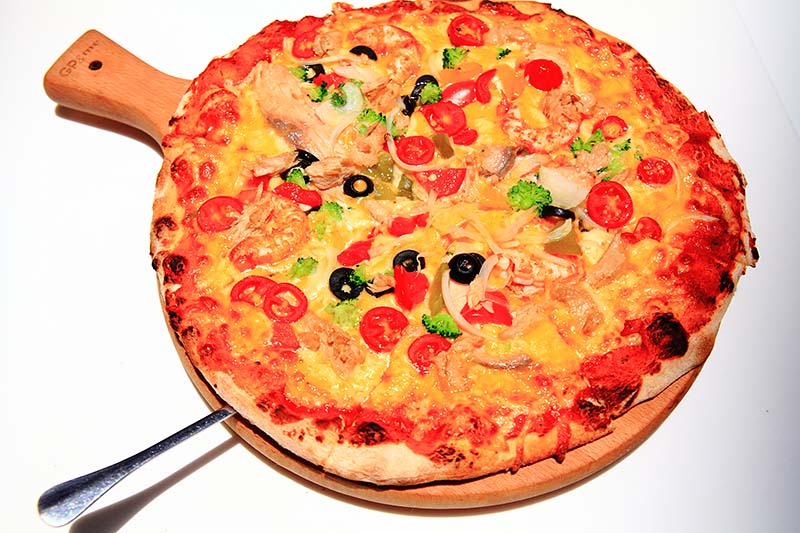 吃下這邊邊酥脆外圍餅皮,上頭滿滿餡料,帶有點厚實溼潤度了整個pizza餅皮,感受海鮮pizza滿滿誠意,pizza跳脫一般一點都不油膩。