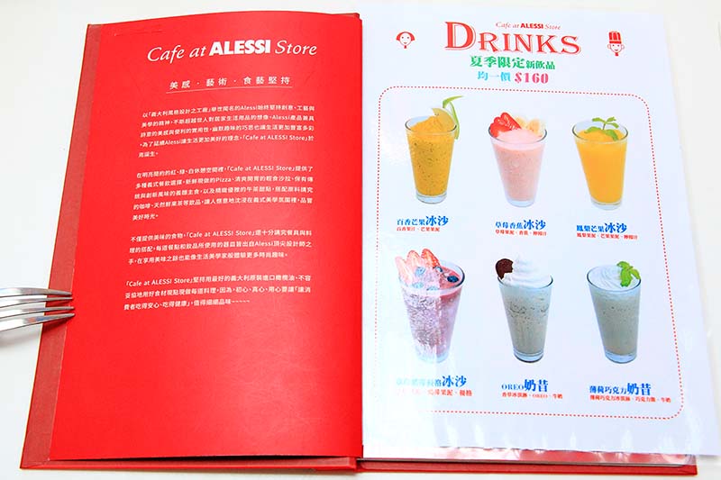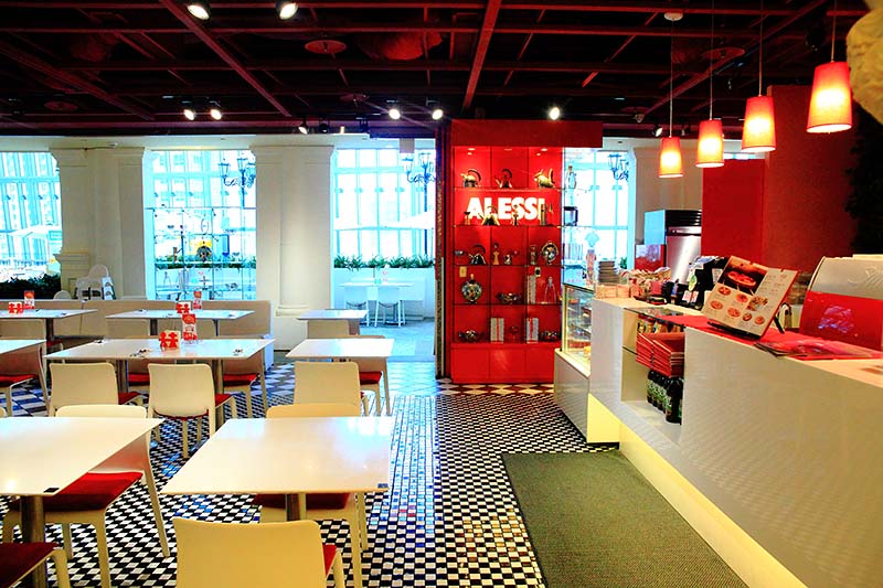 Cafe at ALESSI Store 板橋大遠百店 整本設計以紅色主色系為主,非常熱情奔放的色彩,與此義大利品牌風格形象符合。