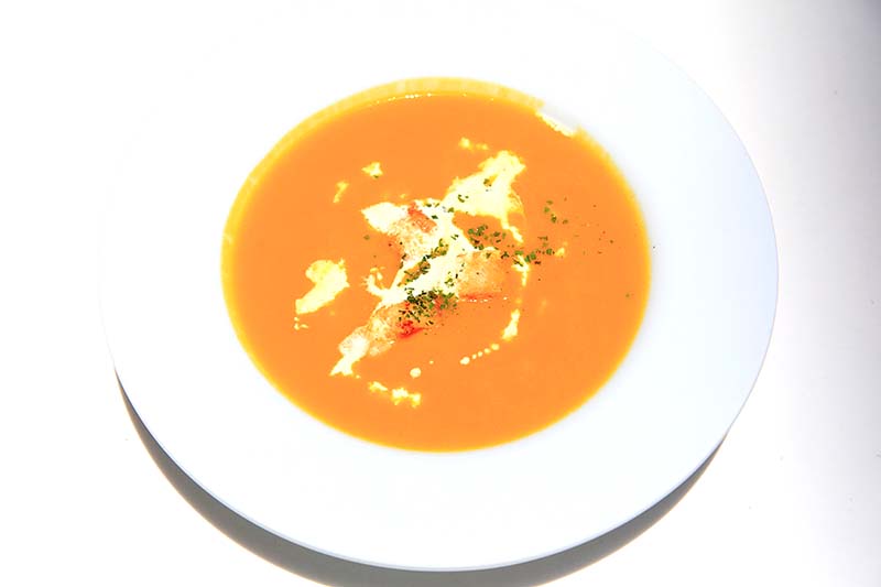 黃金南瓜湯(如上圖),套餐附贈,灑上酥脆麵包丁,金黃色濃湯視覺討喜,黃色是很讓人有激起食慾的色彩,奶香味道濃郁,南瓜香甜逼出香氣,多種層次,擺放在這圓盤中,顯得很可口。