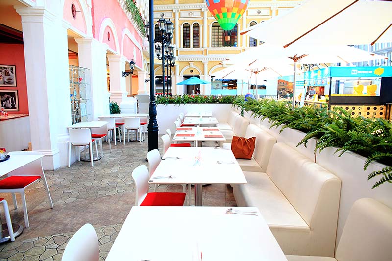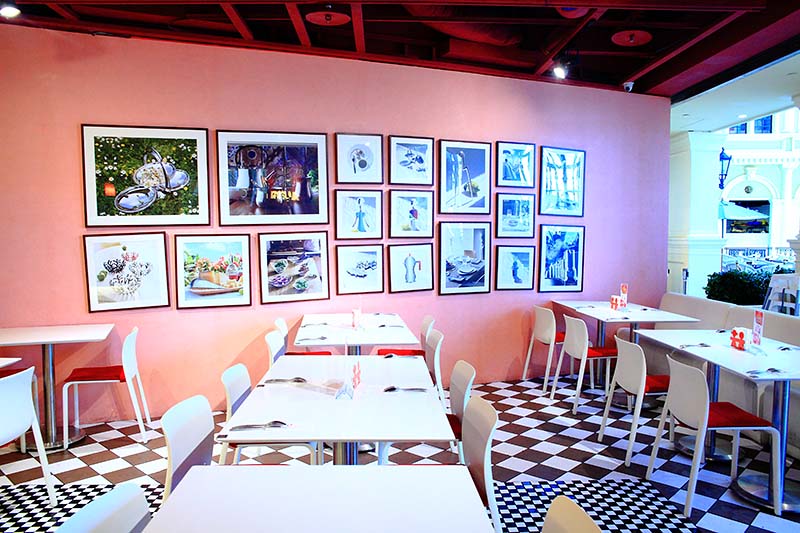 白色桌子、白色工業塑膠椅,紅色座墊,一旁升起高掛熱氣球陪襯,三五好友坐落這兒用餐,聊聊生活,用起餐來顯得很浪漫又不賴。ALESSI Store也是親子友善餐廳,可提供兒童椅,兒童餐具,所以攜帶來孩子用餐,很方便。
