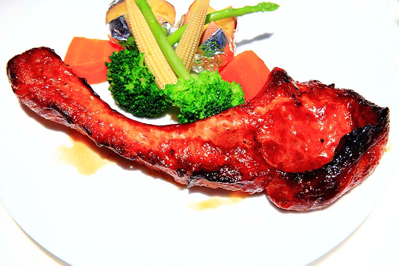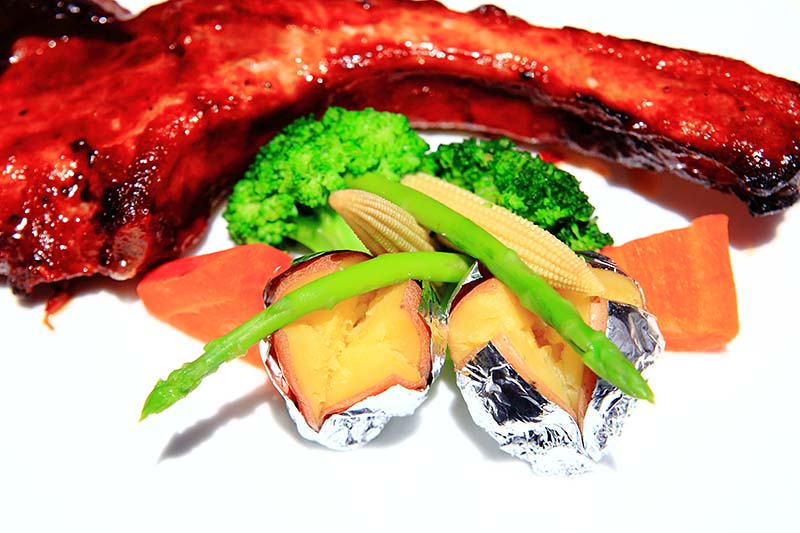 點綴搭配蔬菜提供有:蘆筍及馬鈴薯、紅蘿蔔、玉米筍,光看菜色就很新鮮,視覺效果很好,馬鈴薯非常濕潤綿密,鬆軟質地,不用佐醬汁就好吃,原始自然風味。