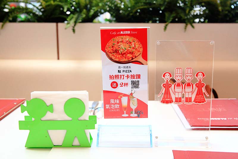 Cafe at ALESSI Store 板橋大遠百店 每張桌上的紙巾架也是小人造型,好可愛,與店內品牌形象一整體,比較可惜是小人造型架應該也要紅色的才對。