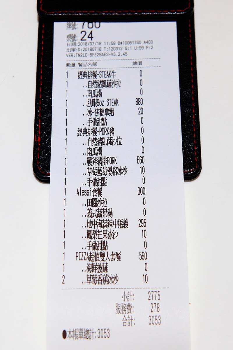 這天我們四人用餐,選了Cafe at ALESSI Store 板橋大遠百店 4人方案最超值,沙朗牛排套餐1份 +戰斧豬排套餐1份 +Pizza套餐/義大利麵套餐系列(任選2份),飯後再吃個甜點與飲料。