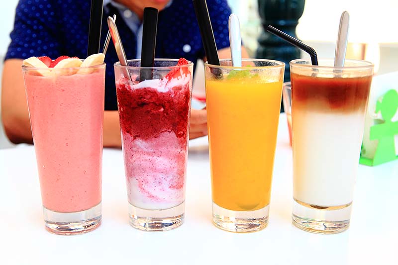 飲料點了草莓香蕉冰沙、草莓藍莓優格冰沙、鳳梨芒果冰沙、冰的焦糖拿鐵(如上圖),冰沙都是挑選台灣當季水果製作成的冰沙,光看就知道用料實在,非常用心,萍子則喝冰的焦糖拿鐵,咖啡則是採用進口義大利的咖啡豆,每一口都可喝到濃郁咖啡香,香醇拿鐵風味,好喝。