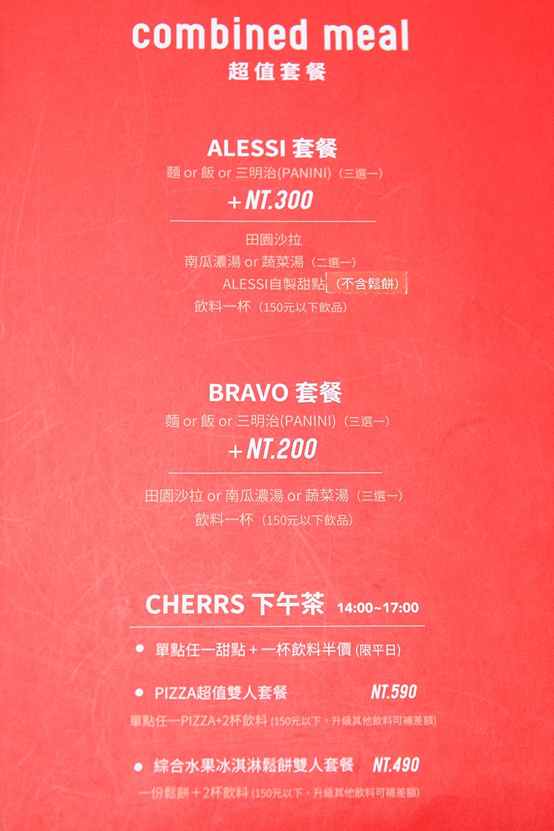 套餐系列附贈沙拉、湯品、甜點、飲料,非常超值,一整個份量粉多又豐富。除此之外,還有提供商業午餐、超值套餐、下午茶套餐優惠,想知道更多菜單介紹,請點連結:https://www.facebook.com/pg/alessicafe/photos/?tab=album&album_id=1458034677648784。