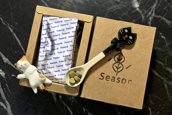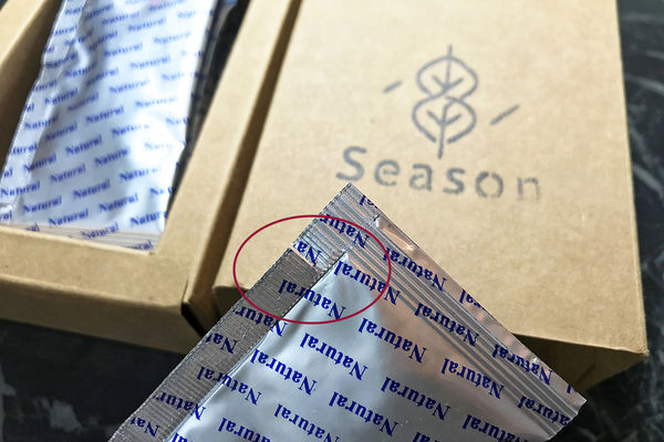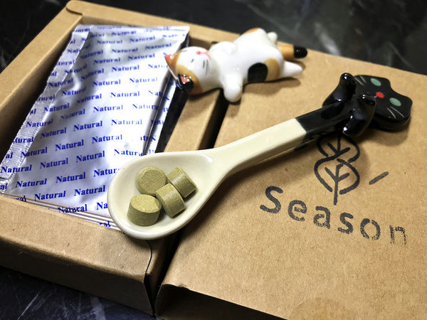 包裝盒簡約大方,正面印著Season LOGO,背面寫著營養標示和有效日期等資訊