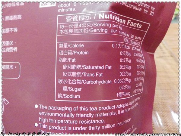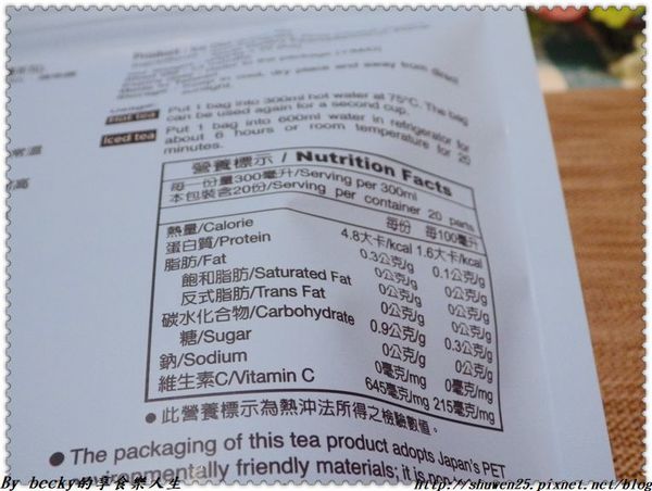 而背後有著品名、成份及營養標示外,還有冷熱的沖泡方法喔!