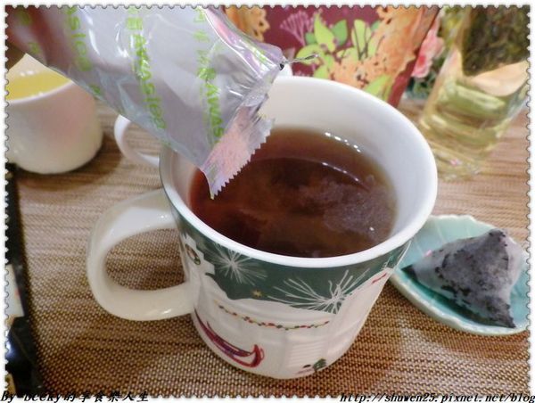 按著沖泡方法:把茶包放入杯中,沖入熱開水~浸泡3分鐘。