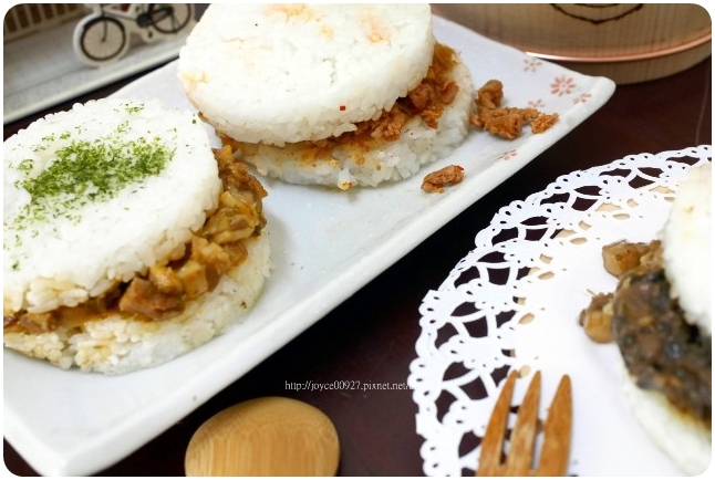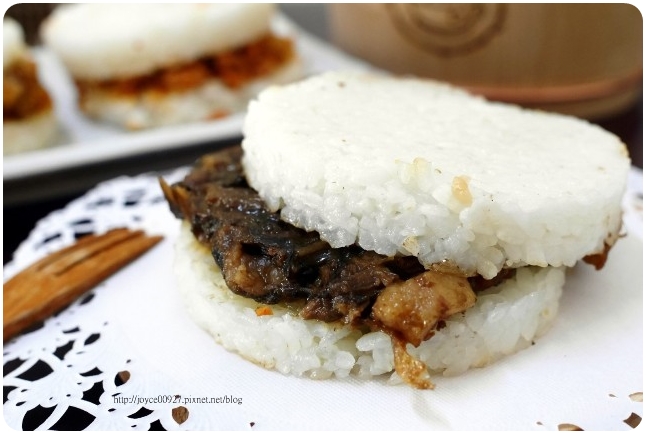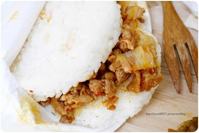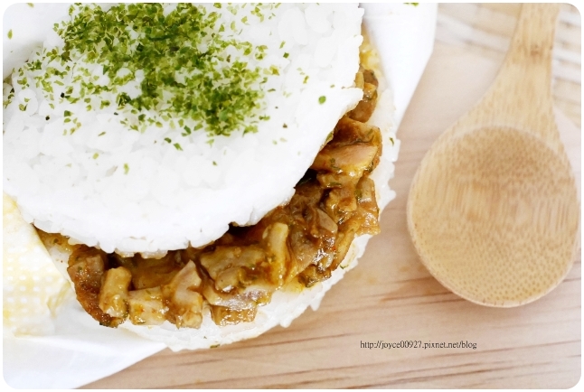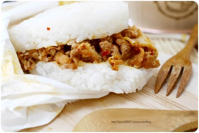 將割包的概念帶進米漢堡中,麵包皮用米飯取而代之...飽足感十足