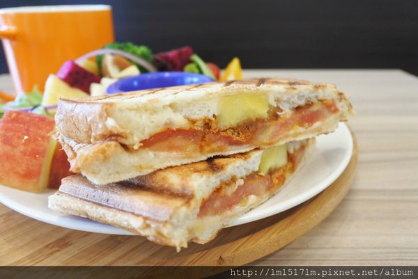 為熱壓吐司,鳳梨加上肉鬆的口感很特別,酸甜鹹的口味皆有