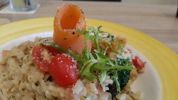 主餐,同時也是這次的MVP,藝名燉飯《鮭魚奶奶》,是白醬燉飯哦!!!