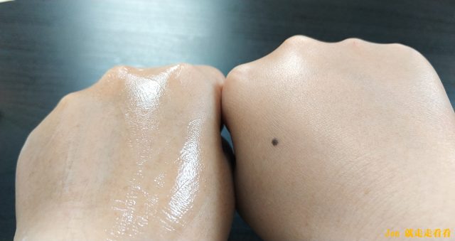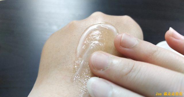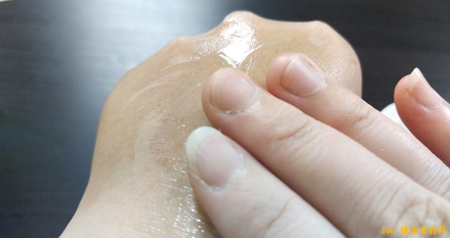 先試擦在手上。凝凍放在手上有些許的冰涼感