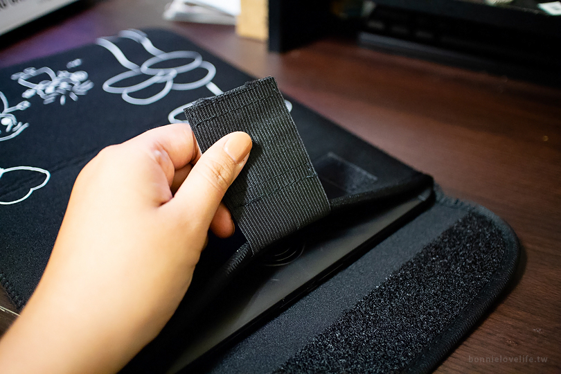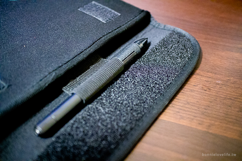 筆電包內也有筆套的部分,若筆套不使用的話可以塞到手繪板底下,讓收藏手繪板更加牢固。