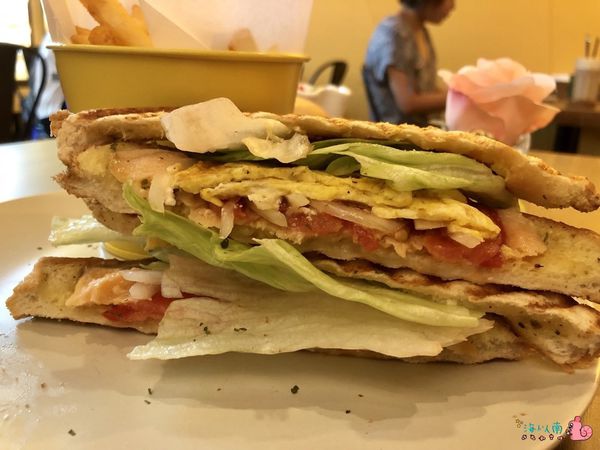 裡面除了有帕尼尼常見的洋蔥、起司、番茄以及生菜外,還有店家特製的蛋白醬及堅果