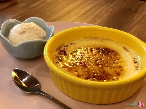 非常大一份烤布蕾,另外還有附帶一小碗香草冰淇淋