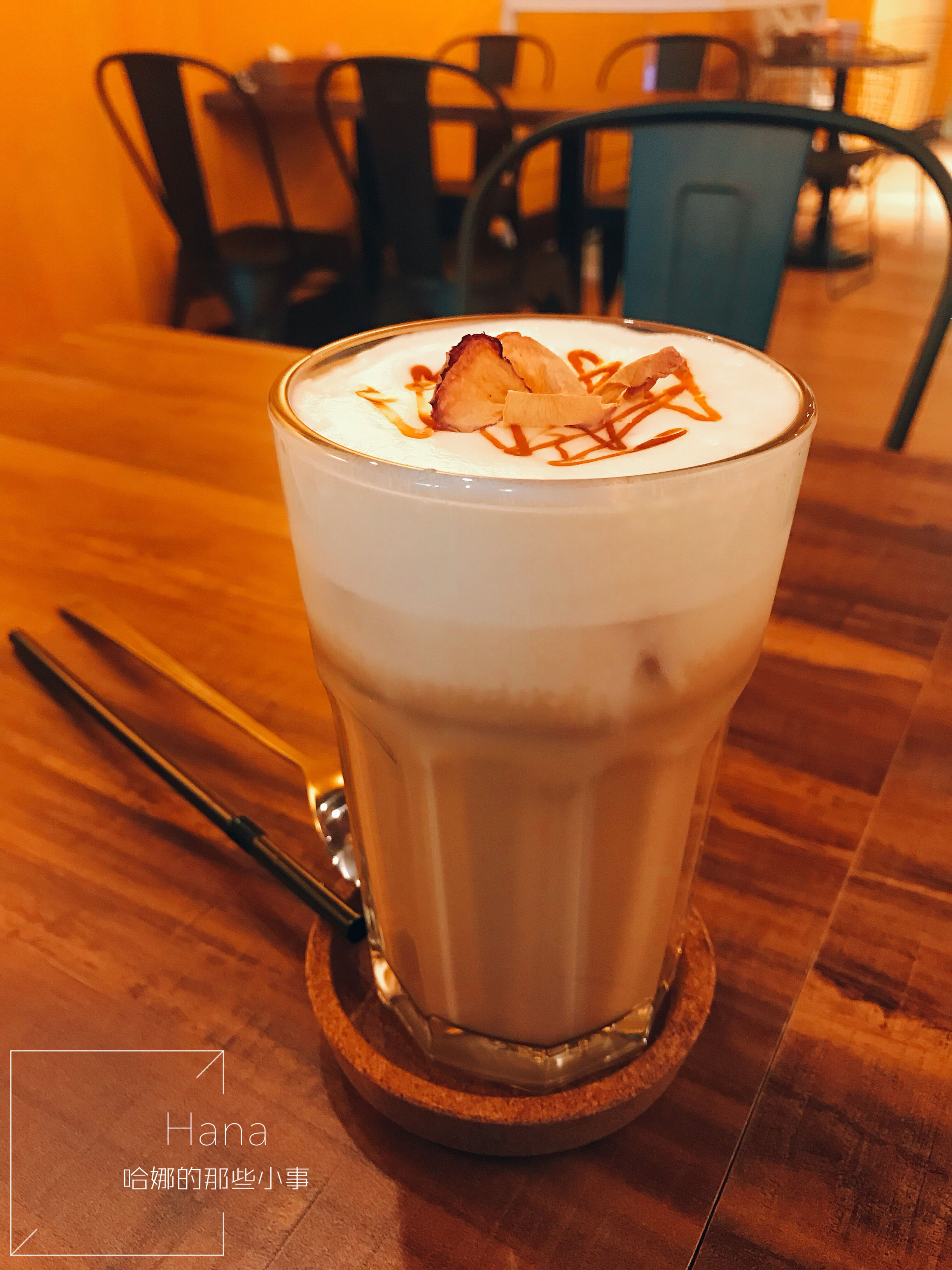 這杯拿鐵我個人覺得可惜的地方是焦糖的甜味蓋過了咖啡香氣。