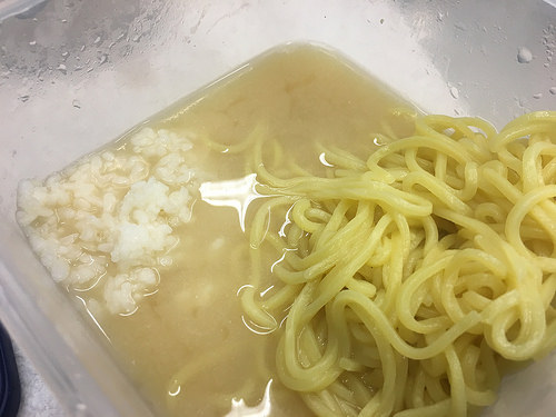 因為沒菜了~就加了一些白飯之後就變成拉麵湯泡飯了