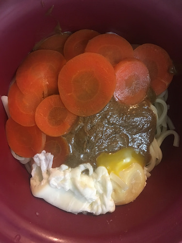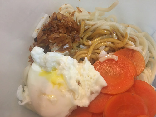 雖然油蔥香氣十足~但覺得味道有些單調加了一顆水波半熟蛋(胡蘿蔔只是配色)
