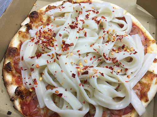 披薩跟刀削麵也可以作結合~如果加上起司~味道會更香濃好吃