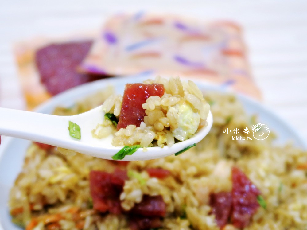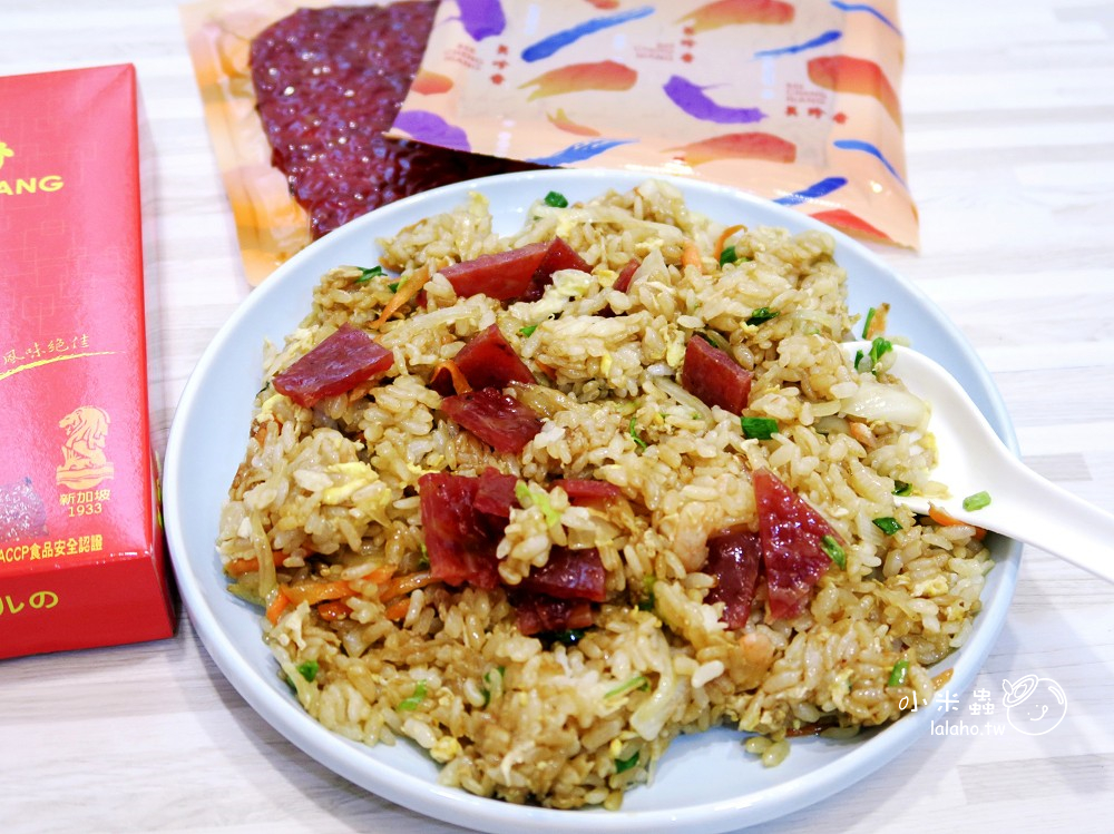 豬肉乾可以直接拆開當零嘴享用,也能當作創意料理,將它切成小小的與炒飯一起拌炒,炒飯裡多了豬肉乾的甜香,也顯得更是可口多味!