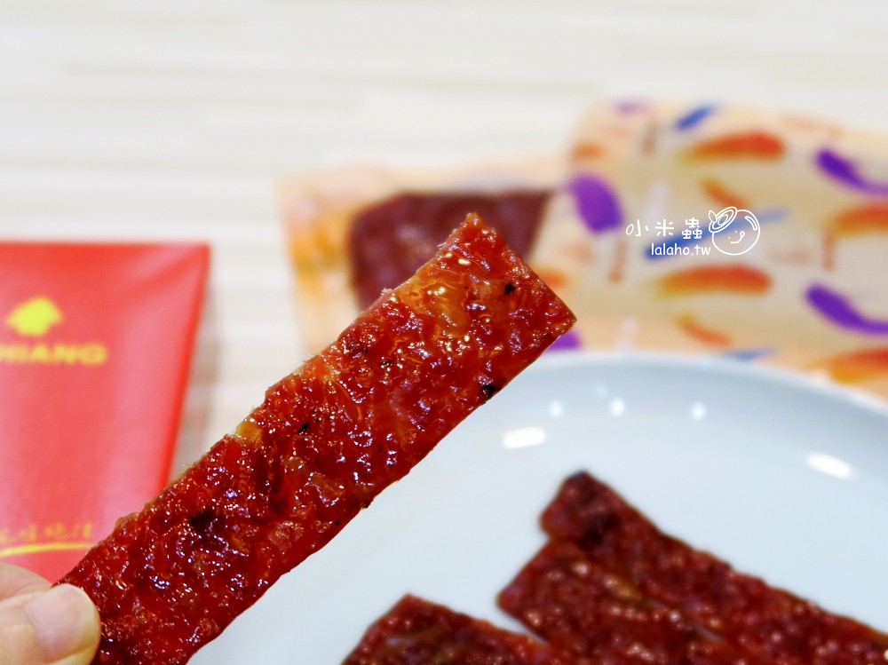 而且始終堅持古法層層炭火燻烤工藝,每片肉乾都需歷經除脂、醃漬、攤篩、炭燻等繁雜手續精製而成,紅艷色澤的肉乾,光看就令人垂涎三尺。