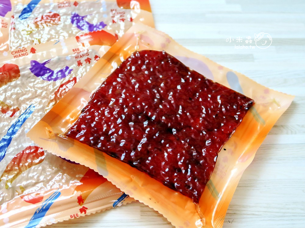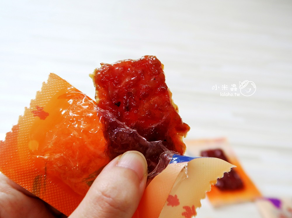 其實原物料跟整片豬肉乾是一樣的,照理說,味道應該也一樣,但我總覺得,這小不點版本的味道好像比較油膩了些??相較之下,切片豬肉乾的味道更得我喜愛!