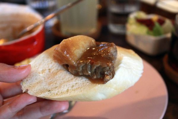 餐點主食可以選擇白飯或軟法,推薦這道要配上麵包,用麵包沾取醬汁來吃棒棒噠。