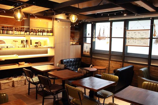 另一側的空間比較大,依賴電燈提供的暖黃光線打出另一種氣氛。