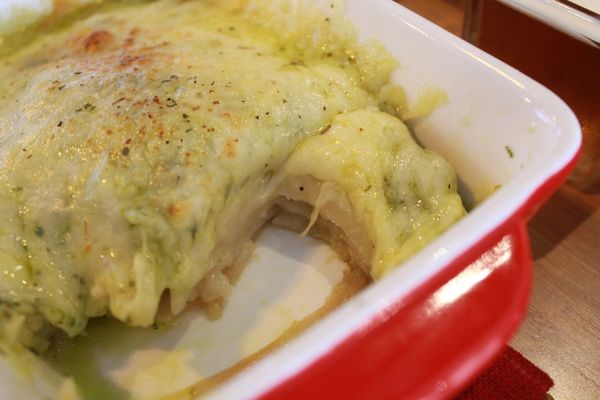 頂層的焗烤沒有烤得很乾,呈現略像起士醬的水嫩感,搭配內部的奶醬。