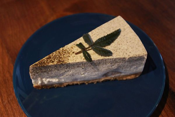 一層拌入茶味的起司、一層夾著荔枝果肉的原味起司、一層餅乾一起吃下去,有淡淡的茶香、甜甜的荔枝、清爽的起司與濃郁的脆餅。